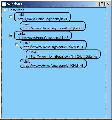 I am going to show you a simple example of how to use Hierarchical DataTemplates in a tree view for an easy display of hierarchical Data. The Example shows the links in a WebPage recursively. First we will create the data model that we want to show, note that we have two seperate models, one for the root element and one for the acctual data.