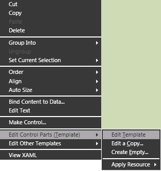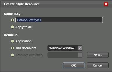 Press ok if you want it in the window's resources or select a resource dictionary if you want it to be placed there, for the sake of the example lets press OK. Now we have created a custom Combobox style. Lets right click on the Combobox toggle button, this menu pops: